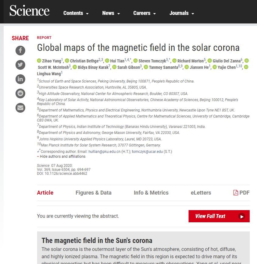 SCIENCE 发表的全球日冕磁场图